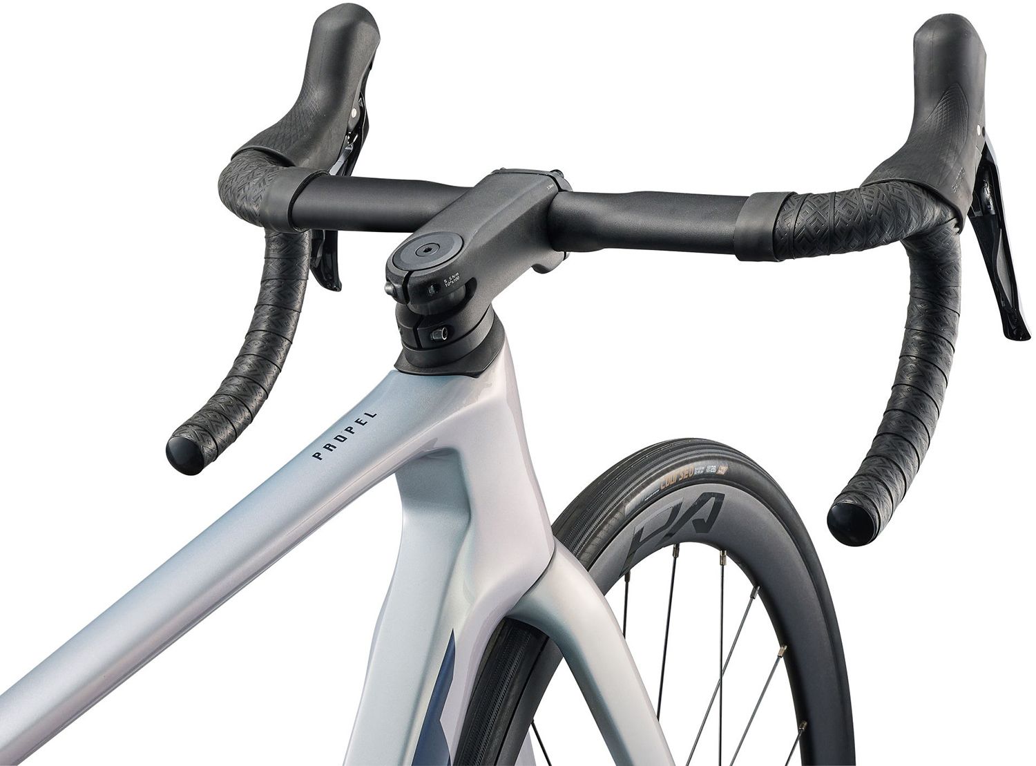 Found inside the head tube of the Defy Propel and TCR ranges the D-shaped fork steerer tube and corresponding spacers provide an extremely aerodynamic easier to service system of internally routed brake and derailleur cables.