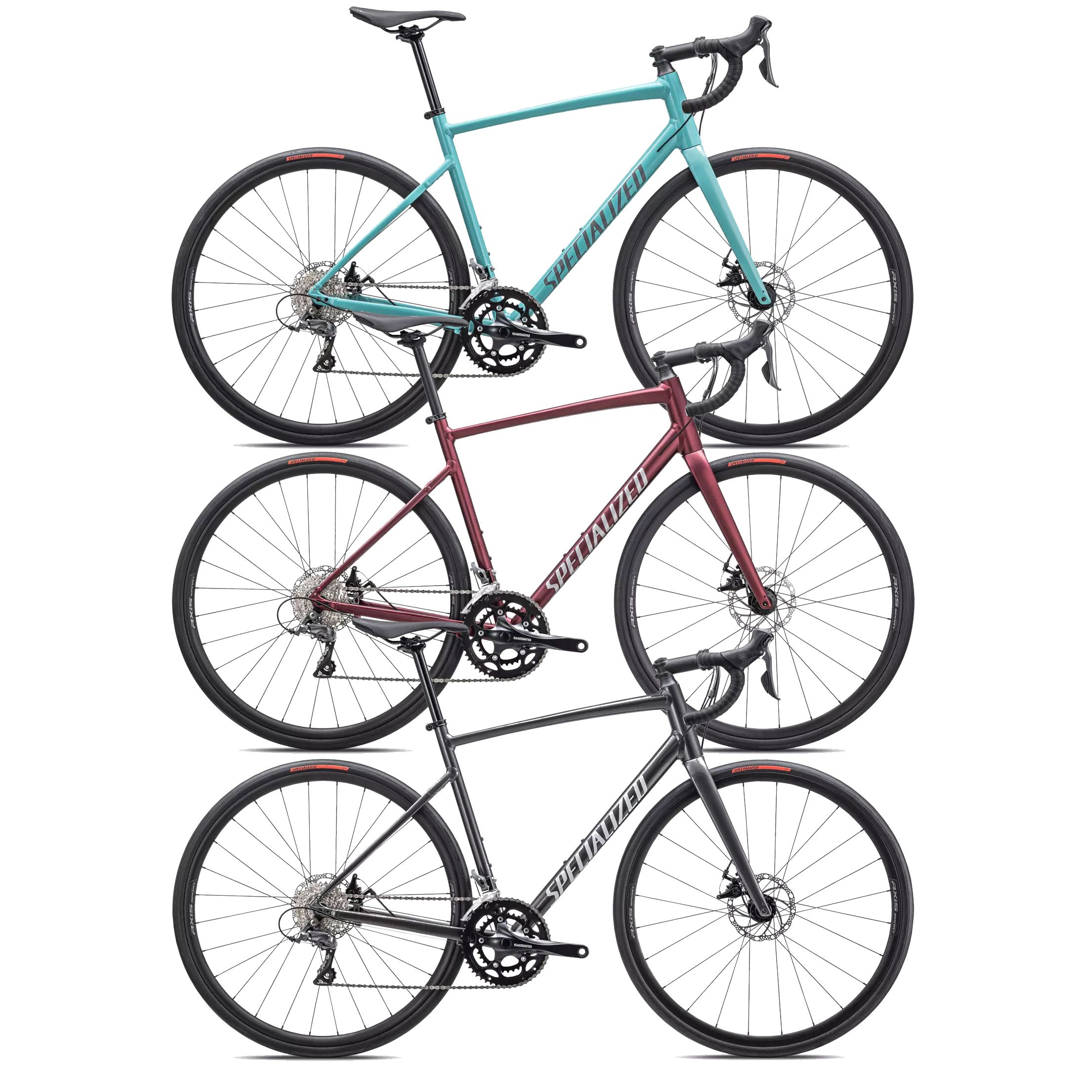 ***Some bikes are shown with an optional rack, fenders, and carbon wheels.