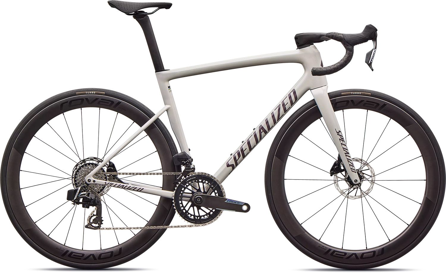 Now, the Tarmac SL8 Pro comes with SRAM’s new power meter equipped Force AXS group for lighter weight, effortless braking, and faster, more precise shifting.